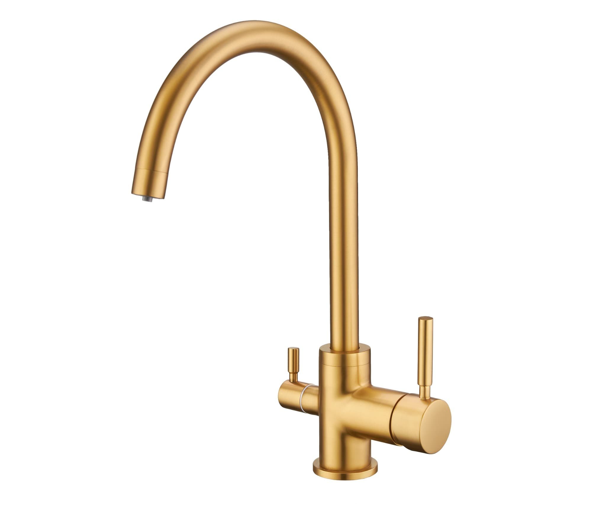 Смеситель имеет монорычажное управление (рычаг на подачу проточной воды и рычаг на подачу питьевой воды). Ручка смесителя удобна для регулировки подачи воды. Смеситель легко встраивается в кухонную мойку.